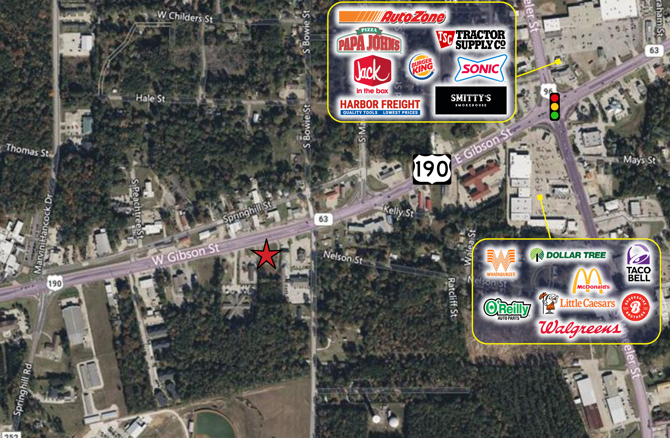 Situated along the busy Highway 190 corridor, 225 W. Gibson Street presents a prime 0.59-acre commercial development opportunity in the heart of Jasper, Texas. The property offers approximately 158 feet of frontage, delivering excellent visibility to the 19,500 vehicles that pass daily. Its convenient position less than half a mile from S. Wheeler Street places it within Jasper’s main commercial district, surrounded by numerous national retailers, restaurants, and daily-needs services. The site is zoned for commercial use and offers the flexibility to accommodate a broad range of business types, from retail and service establishments to professional office development. Featuring direct access, strong traffic exposure, and proximity to key area landmarks and commerce, this property provides an ideal setting for businesses seeking a high-impact location with long-term growth potential.